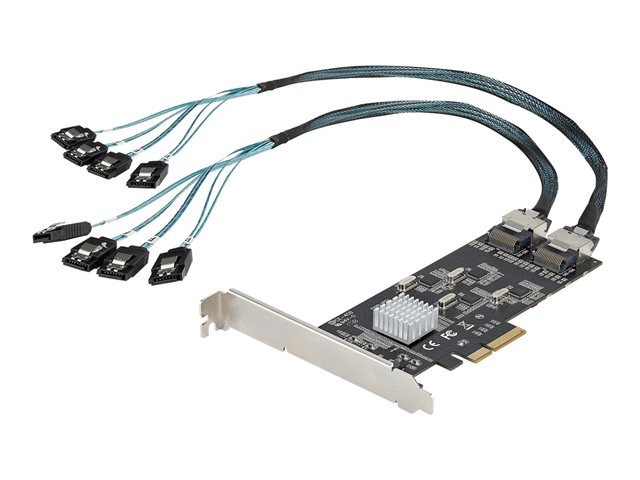Produktbeskrivning StarTech.com 8-ports SATA PCIe-kort - PCI Express 6 Gbps SATA Expansion-kortadapter med 4 värdkontroller - SATA PCIe-kontrollerkort - PCI-e x4 Gen 2 till SATA III - SATA HDD/SSD - kontrollerkort - SATA 6Gb/s / SAS 6Gb/s - PCIe 2.0 x4 Typ av enhet Kontrollerkort - instickskort - låg profil Busstyp PCIe 2.0 x4 Färg Svart Gränssnitt SATA 6Gb/s / SAS 6Gb/s Dataöverföringshastighet 6 Gbit/s Enheter som stöds Hårddisk, halvledarenhet Max antal enheter 8 Systemkrav Microsoft Windows 7 / 8 / 8.1 / 10 / 11, Microsoft Windows Server 2003, Microsoft Windows Server 2008 R2, Microsoft Windows Server 2012, Microsoft Windows Server 2012 R2, Microsoft Windows Server 2016, Microsoft Windows Server 2019, Apple MacOS X 10.10 eller senare, Linux 2.6.32 eller senare Dimensioner (BxDxH) 1.46 cm x 15 cm x 6.86 cm Vikt 75 g Tillverkarens garanti 2 års garanti -