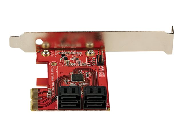 PCIe SATA-expansionskort med 4 portar - 6 Gbps - Lågprofilfäste - Staplade SATA-kontakter - ASM1164 Non-Raid - PCI Express till SATA-omvandlare - Kontrollerkort - SATA 6Gb/s - låg profil - PCIe 3.0 x2 - röd
