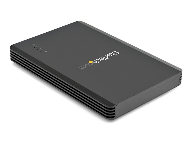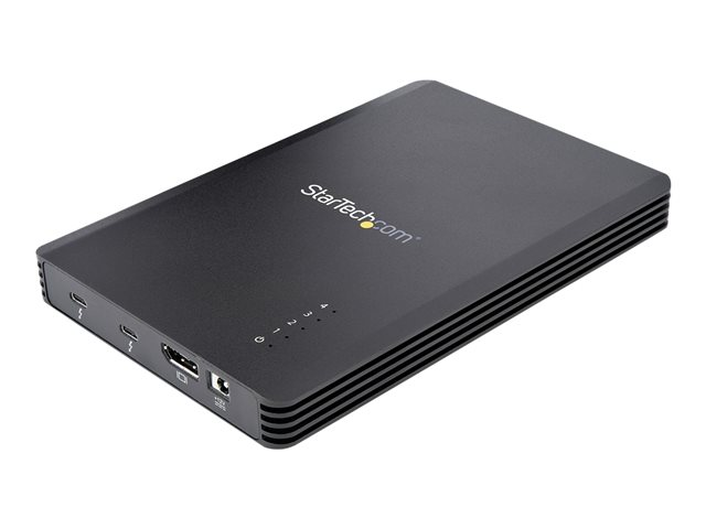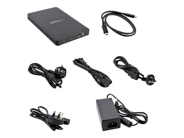 Produktbeskrivning StarTech.com 4 Bay Thunderbolt 3 NVMe Enclosure, For M.2 NVMe Solid State Drives, 1x DisplayPort Video & 2x TB3 Downstream Ports, Up to 40Gbps, 72W Power Supply - 4 Bay M.2 SSD External Hard Drive Enclosure (M2E4BTB3) - förvaringslåda - M.2 NVMe Card / PCIe (NVMe) - Thunderbolt 3 Typ av enhet Förvaringslåda - extern Busstyp Thunderbolt 3 Färg Svart Lokalisering Nordafrika, Japan, Storbritannien, Europa, Australien, Nya Zeeland Expansionsfack 4 x intern - M.2 NGFF 2280 Formfaktorkomptibilitet för hårddisk M.2 Gränssnitt M.2 NVMe Card / PCIe (NVMe) Dataöverföringshastighet 40 GBps Enheter som stöds Halvledarenhet Max antal enheter 4 Strömkälla USB-buss Strömtillförsel AC 110-120 V Dimensioner (BxDxH) 16 cm x 12 cm x 2 cm Vikt 610 g -