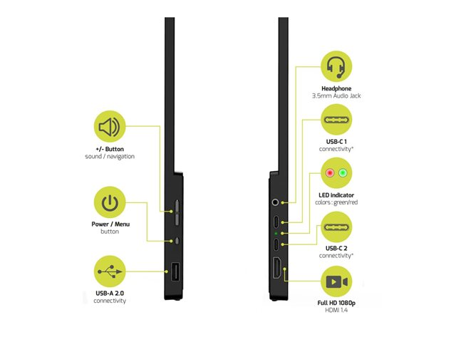 Produktbeskrivning PORT Connect LCD-skärm - Full HD (1080p) - 15.6" Typ av enhet LCD-skärm - 15.6" Paneltyp IPS Bildförhållande 16:9 Ursprunglig upplösning Full HD (1080p) 1920 x 1080 vid 60 Hz Inmatningsanslutningar HDMI, 2xUSB-C Dimensioner (BxDxH) 35.7 cm 21.5 cm Vikt 590 g Standarder som följs Plug and Play, WEEE, Morocco, UKCA Tillverkarens garanti 2 års garanti