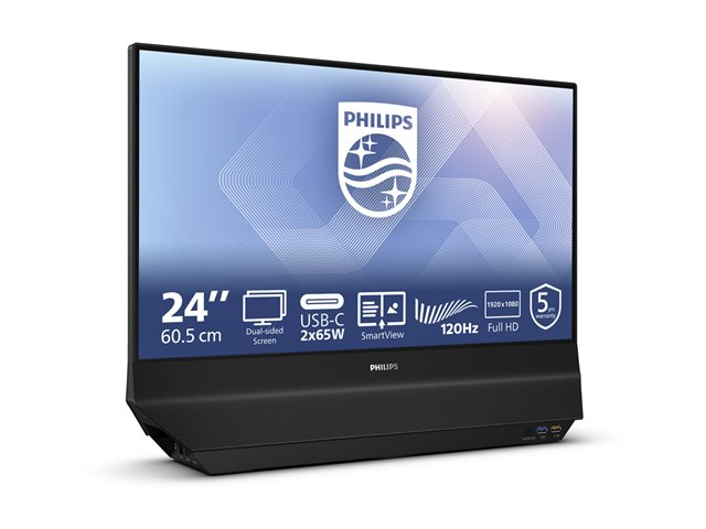 Produktbeskrivning Philips 24B2D5300 - LED-skärm - Full HD (1080p) - 24" Typ av enhet LED-bakgrundsbelyst LCD-skärm - 24" URL med QR-kod för energimärke Https://eprel.ec.europa.eu/qr/2563742 Energiklass Klass D Antal skärmar 2 Egenskaper USB-hubb Paneltyp IPS Bildförhållande 16:9 Ursprunglig upplösning Full HD (1080p) 1920 x 1080 vid 120 Hz Pixelhöjd 0.2745 mm Kontrastförhållande 1500:1 Färgstöd 16,7 miljoner färger (8-bit) Färgskala 100% NTSC, 110% sRGB Inmatningsanslutningar 2xHDMI, 2xUSB-C Displaylägesjusteringar Vridbar bas Skärmbeläggning Bländskydd, 3H Hard Coating, Haze 25 % Spänning AC 100-240 V (50/60 Hz) Färg Svart Dimensioner (BxDxH) - utan ställ 54.1 cm x 12.7 cm x 41.3 cm Vikt 5.32 kg Miljöstandarder ENERGY STAR-godkänd Standarder som följs High Bit Rate 3 (HBR3), HDCP 1.4, Plug and Play, DDC/CI, RoHS, kvicksilverfri, PVC-free, BFR-fri, Eyesafe Certified 2.0 -