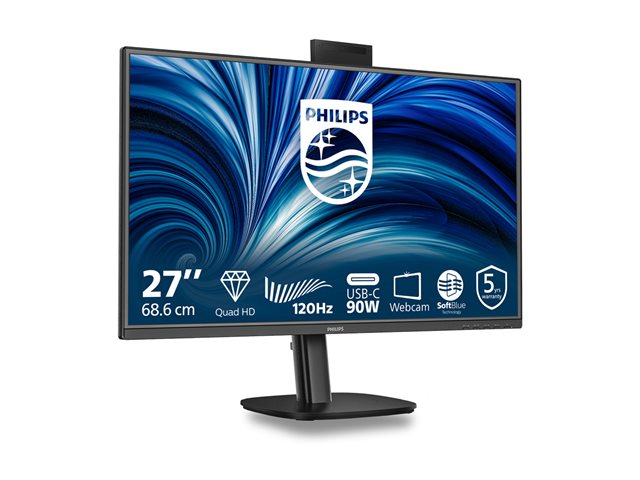 Produktbeskrivning Philips 27B2U3601H - 3000 Series - LED-skärm - QHD - 27" Typ av enhet LED-bakgrundsbelyst LCD-skärm - 27" URL med QR-kod för energimärke Https://eprel.ec.europa.eu/qr/2557184 Energiklass Klass D Adaptive-Sync-teknologi VESA Adaptive-Sync Egenskaper USB-hubb, Gigabit Ethernet-nätverksadapter, uppfällbar webbkamera, USB PD 90 Watt Paneltyp IPS Bildförhållande 16:9 Ursprunglig upplösning QHD 2560 x 1440 vid 120 Hz Pixelhöjd 0.2331 mm Ljusstyrka 350 cd/m² Kontrastförhållande 1500:1 / 50000000:1 (dynamisk) Responstid 4 ms (grå-till-grå) Färgstöd 16,7 miljoner färger (8-bit) Färgskala 114% NTSC (CIE 1976), 125% sRGB (CIE 1931) Inmatningsanslutningar HDMI, DisplayPort, USB-C Inbyggt Ethernet Ja Inbyggd webbkamera 5 Megapixel Displaylägesjusteringar Höjd, pivot (rotation), vridbar bas, lutning Skärmbeläggning Bländskydd, 3H Hard Coating, Haze 25 % Spänning AC 100-240 V (50/60 Hz) Färg Svart Dimensioner (BxDxH) - med stativ (högsta position) 61.5 cm x 14.6 cm x 53.9 cm Vikt 6.44 kg Miljöstandarder TCO Certified Edge Displays, TCO-certifierad, generation 10, för displayer, ENERGY STAR-godkänd Standarder som följs Plug and Play, TUV GS, ICES-003, CB, TUV Ergo, FCC, DDC/CI, RoHS, MEPS, EMF, EAC, BFR-fri, HDCP 2.2, HDCP 1.4, PVC-free, UKCA, TUV Rheinland Low Blue Light (Hardware Solution), High Bit Rate 3 (HBR3), Eyesafe Certified 2.0, EAC RoHS -