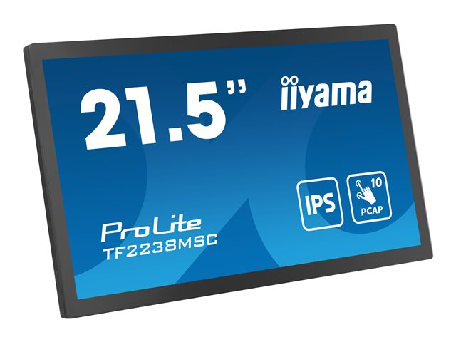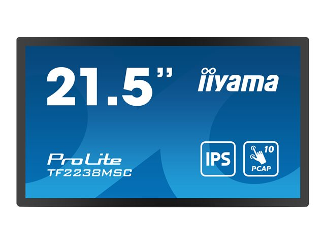 Produktbeskrivning iiyama ProLite TF2238MSC-B1 - LED-skärm - Full HD (1080p) - 21.5" Typ av enhet LED-bakgrundsbelyst LCD-skärm - 21.5" - pekskärm URL med QR-kod för energimärke Https://eprel.ec.europa.eu/qr/1518603 Energiklass Klass D Egenskaper Pekskärm, 2,1 megapixel-kamera Paneltyp IPS Bildförhållande 16:9 Ursprunglig upplösning Full HD (1080p) 1920 x 1080 Pixelhöjd 0.249 mm Ljusstyrka 600 cd/m² Kontrastförhållande 1000:1 Responstid 5 ms (grå-till-grå) Färgstöd 16,7 miljoner färger Inmatningsanslutningar HDMI, DisplayPort Skärmbeläggning 7H Hard Coating Spänning AC 100-240 V (50/60 Hz) Färg Svart, matt Dimensioner (BxDxH) 51.25 cm x 4.7 cm x 30 cm Vikt 5.1 kg Standarder som följs Plug and Play, TUV Bauart, EAC, RoHS, ERP, WEEE, REACH, UKCA Tillverkarens garanti 3 års garanti -