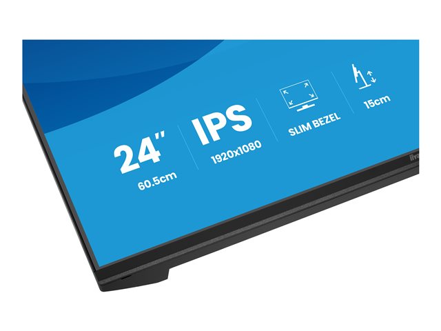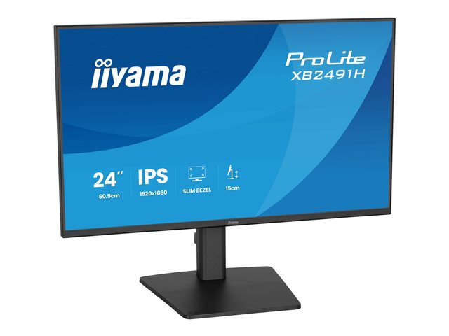Produktbeskrivning iiyama ProLite XB2491H-B1 - LED-skärm - Full HD (1080p) - 24" Typ av enhet LED-bakgrundsbelyst LCD-skärm - 24" URL med QR-kod för energimärke Https://eprel.ec.europa.eu/qr/2517093 Energiklass Klass C Paneltyp IPS Bildförhållande 16:9 Ursprunglig upplösning Full HD (1080p) 1920 x 1080 vid 120 Hz Pixelhöjd 0.275 mm Ljusstyrka 350 cd/m² Kontrastförhållande 1500:1 / 80000000:1 (dynamisk) Responstid 1 ms (MPRT) Färgstöd 16,7 miljoner färger Färgskala 72% NTSC, 96% sRGB Inmatningsanslutningar HDMI, DisplayPort Displaylägesjusteringar Höjd, pivot (rotation), vridbar bas, lutning Skärmbeläggning Matt Spänning AC 100-240 V (50/60 Hz) Färg Svart, matt Dimensioner (BxDxH) - med stativ (lägsta position) 53.9 cm x 22.15 cm x 37.4 cm Vikt 4.8 kg Standarder som följs HDCP, DDC/CI, DDC-2B, TUV GS, EAC, VCCI Class B, RoHS, ERP, WEEE, REACH, UKCA, PSE Mark, REACH SvHC Tillverkarens garanti 3 års garanti -