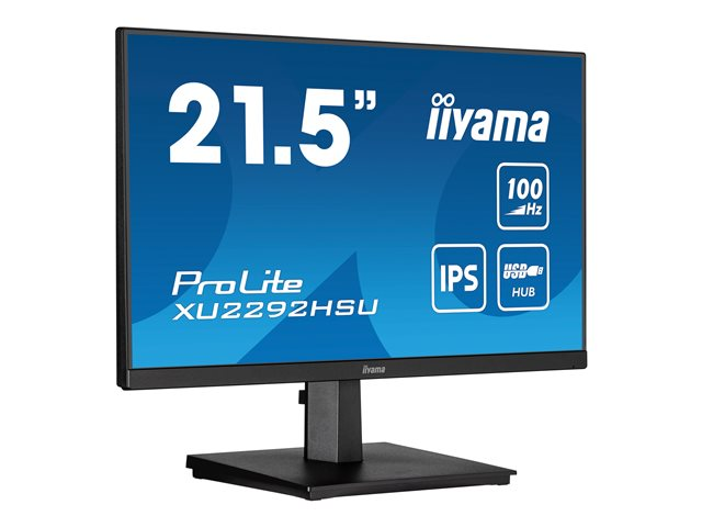 Produktbeskrivning iiyama ProLite XU2292HSU-B6 - LED-skärm - Full HD (1080p) - 22" Typ av enhet LED-bakgrundsbelyst LCD-skärm - 22" URL med QR-kod för energimärke Https://eprel.ec.europa.eu/qr/1772304 Energiklass Klass E Strömkonsumtion (driftläge) 13.5 W Egenskaper USB 3.2 Gen 1 hubb Paneltyp IPS Bildförhållande 16:9 Ursprunglig upplösning Full HD (1080p) 1920 x 1080 vid 100 Hz Pixelhöjd 0.248 mm Ljusstyrka 250 cd/m² Kontrastförhållande 1000:1 / 80000000:1 (dynamisk) Responstid 0.4 ms (MPRT) Färgstöd 16,7 miljoner färger Färgskala 72% NTSC, 99% sRGB Inmatningsanslutningar HDMI, DisplayPort Displaylägesjusteringar Lutning Skärmbeläggning Matt Spänning AC 100-240 V (50/60 Hz) Färg Mattsvart Dimensioner (BxDxH) 48.95 cm x 19.95 cm x 38.4 cm Vikt 3 kg Miljöstandarder TCO Certified Displays 9 Standarder som följs DDC-2B, DDC/CI, RoHS, WEEE, PSE Mark, REACH, TUV Bauart, ERP, VCCI Class B, EAC, UKCA Tillverkarens garanti 3 års garanti -