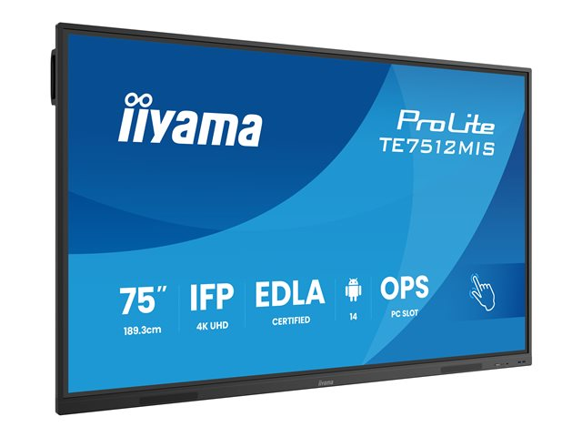 75" Diagonal klass (74.52" visbar) LED-bakgrundsbelyst LCD-skärm - interaktiv digital skyltning - med pekskärm (multi-touch) / PC-anslutning som tillval - 4K UHD (2160p) 3840 x 2160 - Direct LED - svart (ram), matt finish - med iiyama WiFi-modul (OWM002)