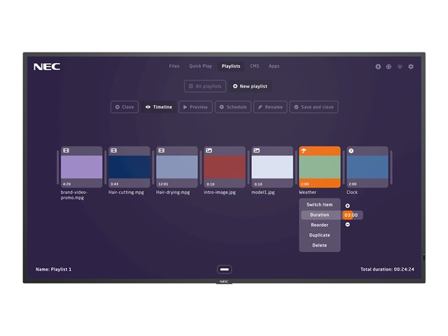 Produktbeskrivning NEC MultiSync M491-MPi4 M Series - 49" LED-bakgrundsbelyst LCD-skärm - 4K - för digital skyltning Typ av produkt LED-bakgrundsbelyst, platt LCD-skärm Diagonalklass 49" Kommersiell användning Ja - digital skyltning Färg Svart, pantone 426M Upplösning 3840 x 2160 Visningsformat 4K UHD (2160p) Rampris och förhöjningsteknologi 60 Hz Refresh Rate Videogränssnitt HDMI HDMI-portskvantitet 2 portar Anknytningsbarhet LAN PC-gränssnitt HDMI, DisplayPort Teknik IPS LCD-teknik för bakgrundsbelysning Kant-LED lokal dimning Bildkvot 16:9 TV-tuner Ingen mottagare Kommersiella funktioner SNMP-support Bildförbättringar DICOM simulerad gamma Högtalarsystem 2 högtalare Lagringskapacitet 32GB eMMC USB Ja Inkluderade tillbehör Fjärrkontroll Spänning AC 120/230 V (50/60 Hz) Energiklass Klass G Energiförbrukning vid drift 80 Watt Strömkonsumtionsställ med 0.5 Watt Dimensioner (BxDxH) 110.34 cm x 6.11 cm x 63.62 cm Vikt 21.8 kg Miljöstandarder ENERGY STAR-godkänd Tillverkarens garanti 3 års garanti -