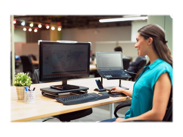 Produktbeskrivning Kensington Monitor Stand Plus with SmartFit System - monitorställ Produkttyp Monitorställ Färg Svart Dimensioner (BxDxH) 30.5 cm x 39.4 cm Vikt 1.71 kg Tillverkarens garanti 2 års garanti -