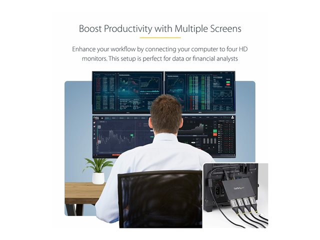 DisplayPort 1.2 MST-hubb - 4x 1080p - DisplayPort video-splitter för utökat skrivbordsläge endast på Windows-datorer - DP till fyra DP-skärmar - Linjedelare för video - 4 x DisplayPort - skrivbordsmodell - för P/N: SV231DPU34K, SVA5N3NEUA