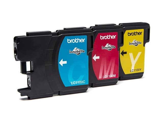 Produktbeskrivning Brother LC1100RBWBP - gul, cyan, magenta - original - bläckpatron Typ av produkt Bläckpatron Utskriftsteknik Bläckstråle Utskriftsfärg Gul, cyan, magenta Egenskaper för tonerkassett Brother Innobella Förpackningstyp Blister Kompatibel med Brother DCP-185C, DCP-395CN, DCP-6690CW, DCP-J715W, MFC-490CW, MFC-5490CN, MFC-790CW, MFC-795CW, MFC-990cw, MFC-J615W; Justio MFC-5890CN -