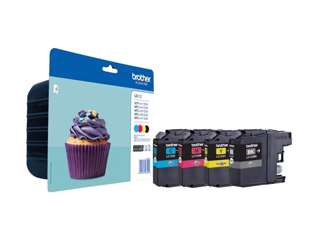 Produktbeskrivning Brother LC123 - 4-pack - svart, gul, cyan, magenta - original - bläckpatron Typ av produkt Bläckpatron Utskriftsteknik Bläckstråle Utskriftsfärg Svart, gul, cyan, magenta Avkastning Upp till 600 sidor ISO/IEC 24711 Medföljande antal 4-pack Förpackningstyp Blister Kompatibel med Brother DCP-J100, DCP-J105, DCP-J132W, DCP-J4110DW, DCP-J552DW, DCP-J752DW -