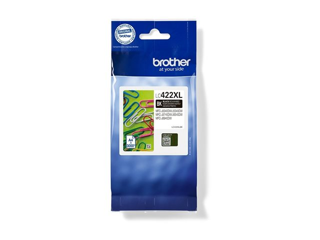 Produktbeskrivning Brother LC422XL - Lång livslängd - svart - original - bläckpatron Typ av produkt Bläckpatron Utskriftsteknik Bläckstråle Utskriftsfärg Svart Kassettens kapacitet Lång livslängd Avkastning Upp till 3000 sidor ISO/IEC 24711 Kompatibel med Brother MFC-J5340DW, MFC-J5345DW, MFC-J5740DW, MFC-J6540DW, MFC-J6940DW -