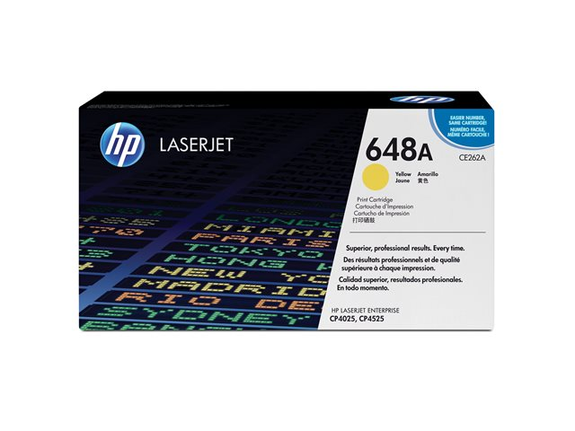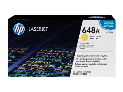 Produktbeskrivning HP 648A - gul - original - LaserJet - tonerkassett (CE262A) Typ av produkt Tonerkassett Utskriftsteknik Laser HP-submärke LaserJet Utskriftsfärg Gul Avkastning Upp till 11000 sidor ISO/IEC 19798 Kompatibel med Color LaserJet Enterprise CP4025dn, CP4025n, CP4525dn, CP4525n, CP4525xh -