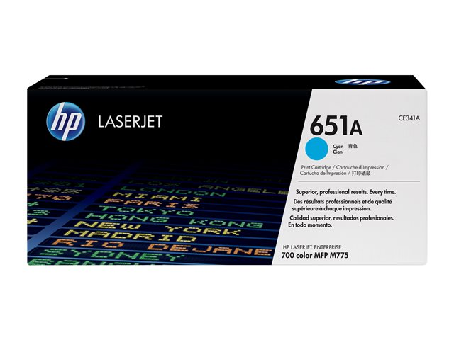 Produktbeskrivning HP 651A - cyan - original - LaserJet - tonerkassett (CE341A) Typ av produkt Tonerkassett Utskriftsteknik Laser HP-submärke LaserJet Utskriftsfärg Cyan Avkastning Upp till 16000 sidor ISO/IEC 19798 Kompatibel med Color LaserJet Enterprise MFP M775dn, MFP M775f, MFP M775z, MFP M775z+; LaserJet Managed MFP M775fm, MFP M775zm -