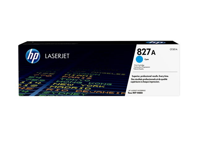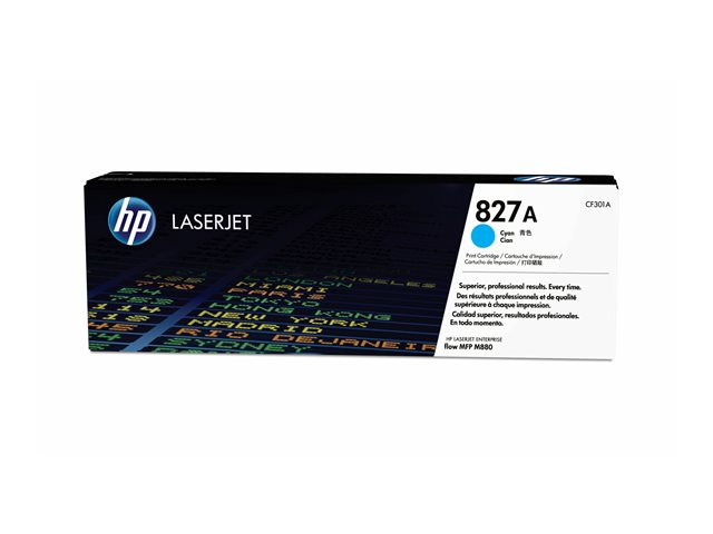 Produktbeskrivning HP 827A - cyan - original - LaserJet - tonerkassett (CF301A) Typ av produkt Tonerkassett Utskriftsteknik Laser HP-submärke LaserJet Utskriftsfärg Cyan Avkastning Upp till 32000 sidor ISO/IEC 19798 Kompatibel med Color LaserJet Managed Flow MFP M880zm, MFP M880zm+; LaserJet Enterprise Flow MFP M880z, MFP M880z+, MFP M880z+ NFC/Wireless direct -
