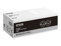 Produktbeskrivning Epson 0710 - 2-pack - hög kapacitet - svart - original - tonerkassett Typ av produkt Tonerkassett Utskriftsteknik LED Utskriftsfärg Svart Kassettens kapacitet Hög kapacitet Avkastning Upp till 2500 sidor Medföljande antal 2-pack Kompatibel med WorkForce AL-M200DN, AL-M200DN Double pack bundle ETD, AL-M200DW, AL-MX200DNF, AL-MX200DWF -