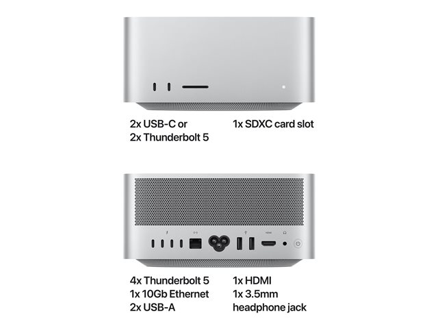 Produktbeskrivning Apple Mac Studio - USFF M3 Ultra - 96 GB - SSD 1 TB Typ PC - USFF Processor Apple M3 Ultra (28-core) Huvudfunktioner för processor Maskinvaruaccelererad ray tracing, Maskinaccelererad H.264, HEVC, ProRes och ProRes RAW, 2 videoavkodningsmotorer, 4 videokodningsmotorer, 4 ProRes kodnings- och avkodningsmotorer, AV1-avkodning, 819 GB/s minnesbandbredd Neural processor enhet (NPU) 32-core Neural Engine RAM 96 GB Hårddisk SSD 1 TB Optisk lagring Ingen optisk drivenhet Kortläsare Ja Grafikstyrenhet Apple M3 Ultra 60-core Digitala videostandarder som stöds H.264, HEVC, ProRes, ProRes RAW, AV1 Nätverksfunktioner 1GbE, 802.11a, 10GbE, 802.11b/g/n, Wi-Fi 5, 5GbE, 2.5GbE, Wi-Fi 6E, Bluetooth 5.3 Strömtillförsel (50/60 Hz) Medföljande OS Apple macOS Sequoia 15.0 Medföljande programvara Apple iMovie, Apple Safari, Apple GarageBand, Photo Booth, Apple Time Machine, Apple FaceTime, Apple Preview, Post, Kartor, Foton, Påminnelser, App Store, Musik, Kontakter, Aktier, Anteckningar, Väder, Kalender, Siri, Messages, Apple Keynote, Apple Pages, Apple Numbers, News, Voice Memos, Podcasts, Home, Apple TV, Find My, Apple Books, Apple Shortcuts, Apple QuickTime Player, Apple Freeform, iPhone spegling, Tips, Passwords Apple Intelligens Ja Färg Silver Dimensioner (BxDxH) 19.7 cm x 19.7 cm x 9.5 cm Vikt 3.64 kg Miljöstandarder ENERGY STAR-godkänd EPEAT Gold Koldioxidavtryck 382 kg koldioxidutsläpp Sällsynta jordartsmetaller 90 % återvunna sällsynta jordartselement Tillverkarens garanti Begränsad garanti - 1 år