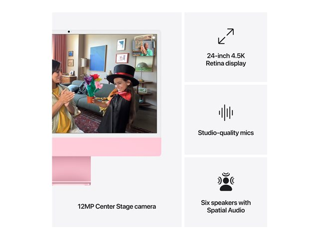 Produktbeskrivning Apple iMac with 4.5K Retina display - allt-i-ett M4 - 24 GB - SSD 512 GB - LED 24" - Svenska/finska Typ PC - allt-i-ett Processor Apple M4 (10-core) Huvudfunktioner för processor Videoavkodningsmotor, maskinvaruaccelererad ray tracing, ProRes kodnings- och avkodningsmotor, AV1-avkodning, 120 GB/s minnesbandbredd, videokodningsmotor, Maskinaccelererad H.264, HEVC, ProRes och ProRes RAW Neural processor enhet (NPU) 16-core Neural Engine RAM 24 GB Hårddisk SSD 512 GB - integrerad Optisk lagring Ingen optisk drivenhet Bildskärm 24" - LED - 4480 x 2520 (4.5K) - 218 ppi Grafikstyrenhet Apple M4 10-core Kamera Ja Digitala ljudstandarder som stöds AAC, MP3, FLAC, Apple Lossless, Dolby Atmos, Dolby Digital, Dolby Digital Plus Digitala videostandarder som stöds H.264, HEVC, ProRes, ProRes RAW, AV1 Ljudutgång Stereo Nätverksfunktioner 1GbE, 802.11a, 802.11b/g/n, Wi-Fi 5, Wi-Fi 6E, Bluetooth 5.3 Tangentbord Svenska/finska Strömtillförsel (50/60 Hz) Medföljande OS Apple macOS Sequoia 15.0 Medföljande programvara Apple iMovie, Apple Safari, Apple GarageBand, Photo Booth, Apple Time Machine, Apple FaceTime, Apple Preview, Post, Kartor, Foton, Påminnelser, App Store, Musik, Kontakter, Aktier, Anteckningar, Väder, Kalender, Siri, Messages, Apple iBooks, Apple Keynote, Apple Pages, Apple Numbers, News, Voice Memos, Podcasts, Home, Apple TV, Find My, Apple Shortcuts, Apple QuickTime Player, Apple Freeform, iPhone spegling Apple Intelligens Ja Färg Rosa Dimensioner (BxDxH) 54.7 cm x 14.7 cm x 46.1 cm Vikt 4.44 kg Miljöstandarder ENERGY STAR-godkänd Koldioxidavtryck 391 kg koldioxidutsläpp Sällsynta jordartsmetaller 99 % återvunna sällsynta jordartselement Tillverkarens garanti Begränsad garanti - 1 år