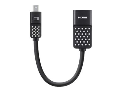 Produktbeskrivning Belkin Mini DisplayPort to HDMI Adapter, 4k - videokort - DisplayPort / HDMI - 12.7 cm Kabel Videokort - DisplayPort / HDMI Kabellängd 12.7 cm Kontaktdon Mini DisplayPort - hane (ingång) Kontakt (andra änden) HDMI - hona (utgång) Egenskaper Stöd för 4K -