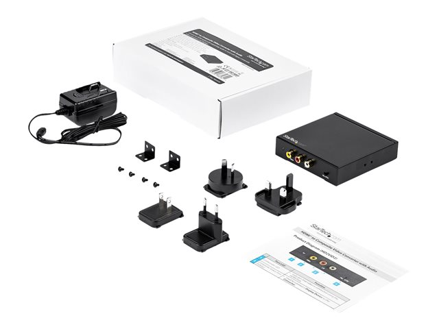 Produktbeskrivning StarTech.com HDMI to RCA Converter Box with Audio - Composite Video Adapter - NTSC/PAL - 1080p (HD2VID2) - videokonverterare - svart Typ av enhet Videokonverterare Gränssnitt 1 x komponentvideo/ljudingång - RCA x 3