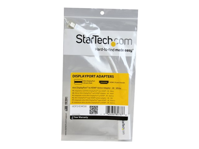 Aktiv mDP till HDMI videokonverterare - 4K 30 Hz - Mini DP eller Thunderbolt 1/2 Mac/PC till HDMI monitor/TV/bildskärm - mDP 1.2 till HDMI-adapterdongel - Vit - Videokort - Mini DisplayPort hane till HDMI hona - 15 cm - vit - aktiv, 4K30 Hz (3840 x 2160) stöd