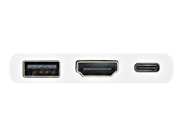 Produktbeskrivning StarTech.com USB-C multiportadapter med HDMI - USB 3.0-port - 60 W PD - Vit - videokort - HDMI / USB - 60 mm Kabel Videokort - HDMI / USB Max effektupplösning 4096 x 2160 - 24 Hz Kabellängd 60 mm Färg Vit Kontakter 24 pin USB-C - hane (ingång) Kontakter (andra änden) HDMI - hona (utgång)