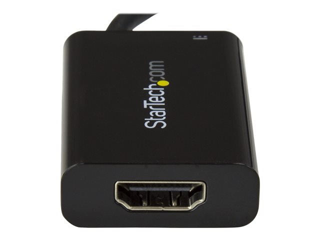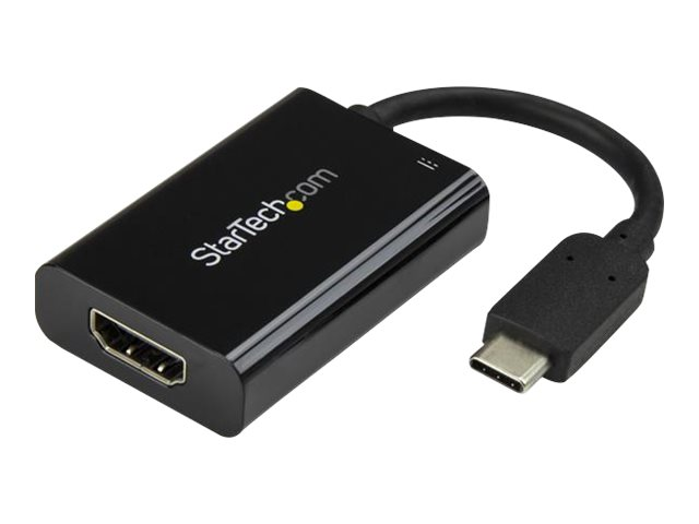 Produktbeskrivning StarTech.com USB C till HDMI 2.0-adapter med strömförsörjning - videokonverterare USB Type-C till HDMI-skärm för 4K vid 60 Hz - port som ger strömförsörjning på 60 W för direktladdning - Thunderbolt 3-kompatibel - svart - videokort - HDMI / USB Kabel Videokort - HDMI / USB Max effektupplösning 4096 x 2160 - 60 Hz Färg Svart Kontakter 24 pin USB-C - hane (ingång) Kontakter (andra änden) HDMI - hona (utgång)