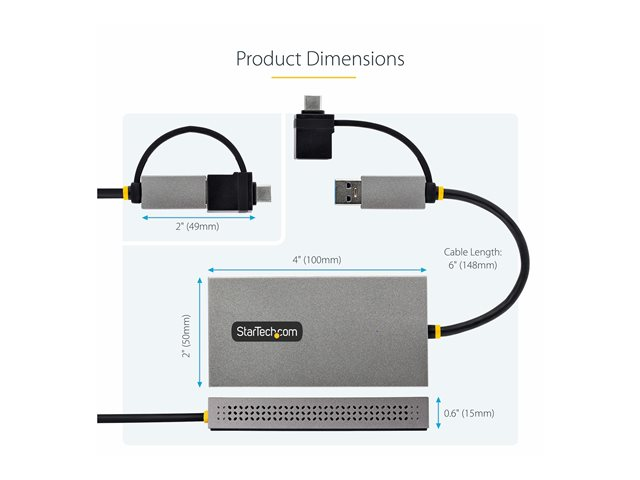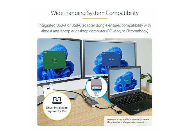 Produktbeskrivning StarTech.com USB to Dual HDMI Adapter, USB A/C to 2x HDMI Monitors (1x 4K 30Hz, 1x 1080p), Integrated USB-A to C Dongle, 4in/11cm Cable, Windows & macOS - USB 3.0 to HDMI Multi-Monitor Display Adapter for Laptop (107B-USB-HDMI) - videokort - HDMI / USB Kabel Videokort - HDMI / USB Max effektupplösning 3840 x 2160 - 30 Hz Färg Grå Kontakter USB typ A - hona