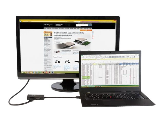 Produktbeskrivning Startech A/V-reseadapter: 3-i-1 Mini DisplayPort till VGA-, DVI- eller HDMI-konverterare - videokort - Mini DisplayPort / HDMI / DVI / VGA - 27 cm Kabel Videokort - Mini DisplayPort / HDMI / DVI / VGA Max effektupplösning 1920 x 1200 Kabellängd 27 cm Färg Svart Kontakter Mini DisplayPort - hane Kontakter (andra änden) HDMI - hona