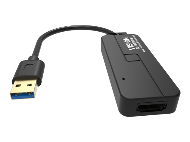 Produktbeskrivning Vision - extern videoadapter - svart Typ av enhet Extern videoadapter Busstyp SuperSpeed USB 3.0 Max upplösning 1920 x 1080 Gränssnittsdetaljer USB 3.0 (hankontakt)