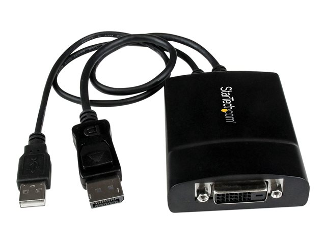 DisplayPort till DVI-D adapter videokonverterare 2560x1600 60 Hz - DP 1.2 till DVI-skärm - USB-driven - Låsande DP-kontakt - DisplayPort-/ DVI-adapter - USB (endast ström), DisplayPort (hane) till DVI-D (hona) spärrad - USB 2.0 / DisplayPort 1.2 - 37 cm - USB-ström, aktiv, 2560 x 1600 (WQXGA) -stöd - svart