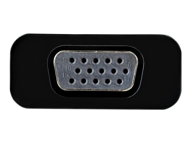 Produktbeskrivning StarTech.com USB C till VGA-adapter med strömförsörjning - videokonverterare USB Type-C till VGA-skärm för 1080p, med laddning - strömförsörjning på 60 W för direktladdning - Thunderbolt 3-kompatibel - svart - USB/VGA-adapter - 15 m Typ USB/VGA-adapter Egenskaper USB Power Delivery (60W), 2048 x 1280-stöd 60 Hz, stöd för HBR2, stödjer DisplayPort alternativläges Kabellängd 15 m Kontakter 24 pin USB-C - hane (ingång) Kontakter (andra änden) 15 pin HD D-Sub (HD-15) - hona (utgång)