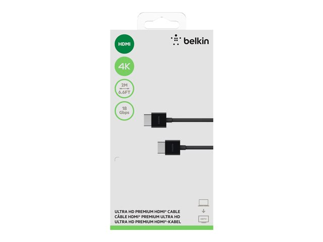 Produktbeskrivning Belkin Premium Series HDMI-kabel - 2 m Kabel HDMI-kabel Kabellängd 2 m Kontaktdon HDMI - hane Kontakt (andra änden) HDMI - hane Egenskaper Stöd för 4K -
