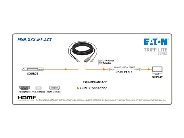 Eaton Tripp Lite Series HDMI Extension Cable with Active Repeater (M/F), 4K 60 Hz, HDR, 4:4:4, HDCP 2.2, 10 ft. (3.1 m), TAA