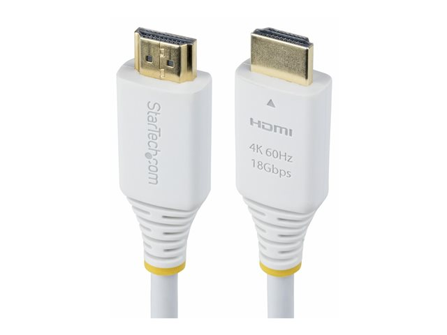 Produktbeskrivning StarTech.com 10ft (3m) Premium Certified High Speed HDMI Cable, 4K60Hz - HDMI-kabel med Ethernet - 3 m Kabel Premium hög hastighet - HDMI-kabel med Ethernet Teknik Skärmad American Wire Gauge (AWG) 30 Kabellängd 3 m Färg Vit Kontaktdon HDMI - hane Kontakt (andra änden) HDMI - hane Egenskaper Passiv kabel, 2K144Hz stöd, 4K60Hz UHD-stöd, HDR10-stöd Tillverkarens garanti Begränsad livstidsgaranti -