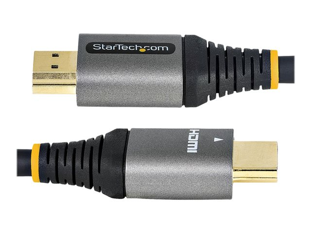 Produktbeskrivning StarTech.com 20in (0.5m) Premium Certified HDMI 2.0 Cable with Ethernet, High-Speed Ultra HD 4K 60Hz HDMI Cable HDR10, ARC, HDMI Cord For Ultra HD Monitors, TVs, Displays, w/ TPE Jacket - Durable HDMI Video Cable (HDMMV50CM) - HDMI-kabel med Ethernet - 50 cm Kabel Premium hög hastighet - HDMI-kabel med Ethernet Teknik Skärmad American Wire Gauge (AWG) 30 Kabellängd 50 cm Färg Grå, svart Kontaktdon HDMI - hane Kontakt (andra änden) HDMI - hane Egenskaper Passiv kabel, 4K60Hz (3840 x 2160) stöd Tillverkarens garanti Begränsad livstidsgaranti -