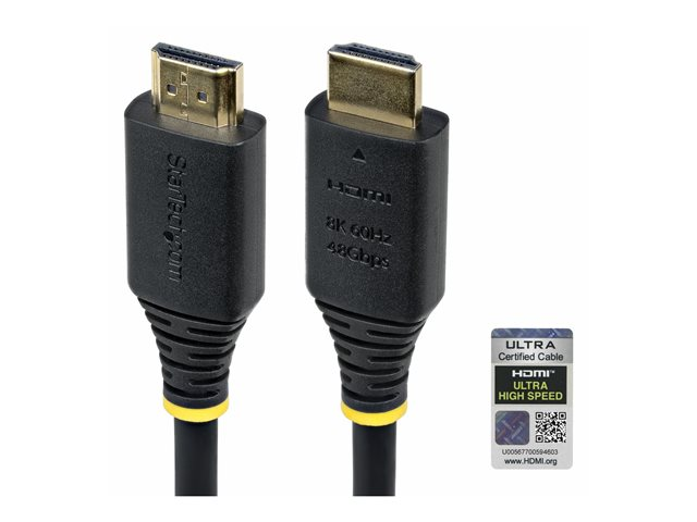 Produktbeskrivning StarTech.com HDMI-kabel - 50 cm Kabel Ultra High Speed - HDMI-kabel Teknik Skärmad American Wire Gauge (AWG) 30 Kabellängd 50 cm Färg Svart Kontaktdon HDMI - hane Kontakt (andra änden) HDMI - hane Egenskaper Passiv kabel, 4K120Hz stöd, 8K60 Hz (7680 x 4320) stöd Tillverkarens garanti Begränsad livstidsgaranti -
