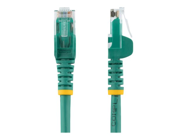 Produktbeskrivning StarTech.com 15m CAT6 Ethernet Cable, 10 Gigabit Snagless RJ45 650MHz 100W PoE Patch Cord, CAT 6 10GbE UTP Network Cable w/Strain Relief, Green, Wiring is UL Certified/TIA - Category 6 - 24AWG (N6PATC15MGN) - patch-kabel - 15 m - grön Typ Patch-kabel - CAT 6 Teknik UTP (oskärmat tvinnat par) Kablageschema T568B Trådar per kabel 8 kablar Egenskaper Formpressad, hakfri Kabellängd 15 m Kontaktdon RJ-45 - hane Kontakt (andra änden) RJ-45 - hane Färg Grön Tillverkarens garanti Begränsad livstidsgaranti -