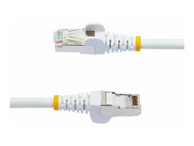 White - Low Smoke Zero Halogen (LSZH) - 10GbE 500MHz 100W PoE++ Snagless RJ-45 w/Strain Reliefs S/FTP Network Patch Cord - Patch-kabel - RJ-45 (hane) till RJ-45 (hane) - 1 m - S/FTP - CAT 6a - IEEE 802.3bt - halogenfri, formpressad, hakfri, tvinnad - vit