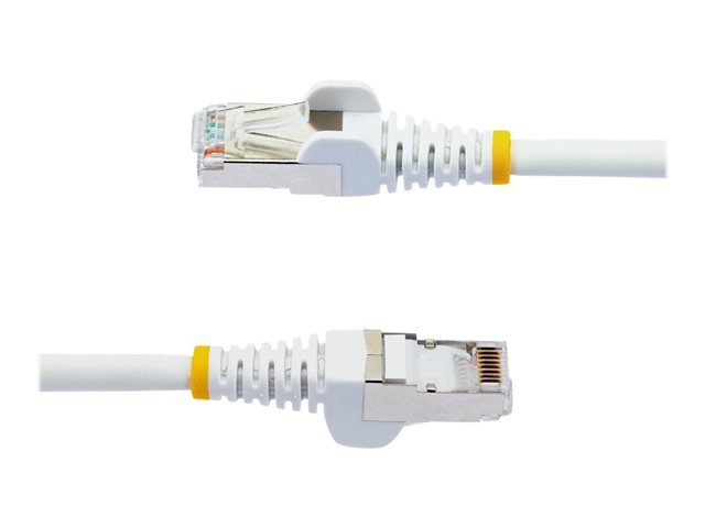 White - Low Smoke Zero Halogen (LSZH) - 10GbE 500MHz 100W PoE++ Snagless RJ-45 w/Strain Reliefs S/FTP Network Patch Cord - Patch-kabel - RJ-45 (hane) till RJ-45 (hane) - 7.5 m - S/FTP - CAT 6a - IEEE 802.3bt - halogenfri, formpressad, hakfri, tvinnad - vit