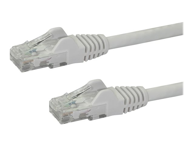 Produktbeskrivning StarTech.com 7m CAT6 Ethernet Cable, 10 Gigabit Snagless RJ45 650MHz 100W PoE Patch Cord, CAT 6 10GbE UTP Network Cable w/Strain Relief, White, Wiring is UL Certified/TIA - Category 6 - 24AWG (N6PATC7MWH) - patch-kabel - 7 m - vit Typ Patch-kabel - CAT 6 Teknik UTP (oskärmat tvinnat par) Kablageschema T568B Egenskaper Hakfri, minimerad Near-End Crosstalk (NEXT) Kabellängd 7 m Kontaktdon RJ-45 - hane Kontakt (andra änden) RJ-45 - hane Färg Vit Tillverkarens garanti Begränsad livstidsgaranti -