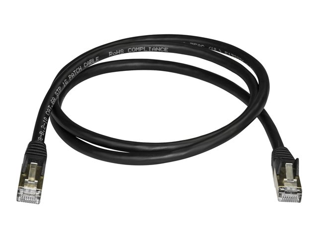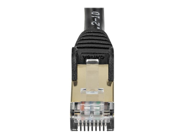 Produktbeskrivning StarTech.com 7m CAT6A Ethernet Cable, 10 Gigabit Shielded Snagless RJ45 100W PoE Patch Cord, CAT 6A 10GbE STP Network Cable w/Strain Relief, Black, UL Certified Wiring/TIA - Category 6A - 26AWG (6ASPAT7MBK) - patch-kabel - 7 m - svart Typ Patch-kabel - CAT 6a Teknik STP (skärmat tvinnat par) Avskärmningsmaterial Aluminum-polyesterfolie Trådar per kabel 8 kablar Egenskaper Formpressad, hakfri, klammer, PoE-förberedd, RFI/EMI-skärmning Kabellängd 7 m Kontaktdon RJ-45 - hane Kontakt (andra änden) RJ-45 - hane Färg Svart Tillverkarens garanti Begränsad livstidsgaranti -