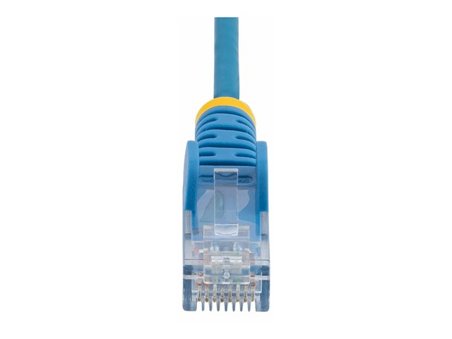 RJ-45 (hane) till RJ-45 (hane) - 25 cm - 3.6 mm - UTP - CAT 5/5e/6 - IEEE 802.3bt - halogenfri, hakfri, rak - blå