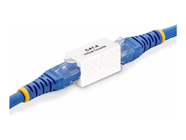 Produktbeskrivning StarTech.com RJ45 Coupler, Inline Cat6 Coupler, Female to Female (F/F) T568 Connector, Unshielded Ethernet Cable Extension (IN-CAT6-COUPLER-U1) - kopplingsdon för nätverk - vit Typ Kopplingsdon för nätverk - CAT 5/5e/6 Teknik Oskärmad Kablageschema T568B Egenskaper Passiv adapter, polykarbonathölje, 750 anslutningscykler, fosforbronskontakter Kontaktdon RJ-45 - hona Kontakt (andra änden) RJ-45 - hona Färg Vit Tillverkarens garanti Begränsad livstidsgaranti -