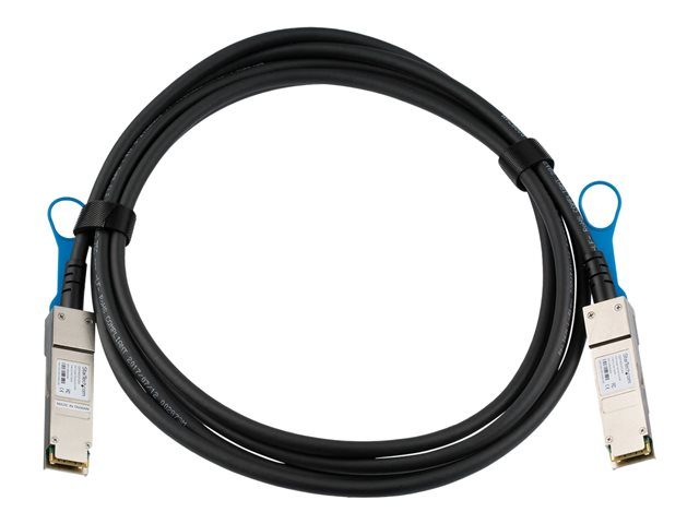 Produktbeskrivning StarTech.com MSA Uncoded Compatible 3m 40G QSFP+ to QSFP+ Direct Attach Breakout Cable Twinax, 40 GbE QSFP+ Copper DAC 40 Gbps Low Power Passive Transeiver DAC Cable, 40GE QSFP+ Cable - Lifetime Warranty (QSFP40GPC3M) - 40GBase direktkopplingskabel - 3 m - svart Typ 40GBase direktkopplingskabel - SFF-8436 Teknik Dubbelaxlad Egenskaper Passiv kabel Kabellängd 3 m Kontaktdon QSFP+ - spärrad Kontakt (andra änden) QSFP+ - spärrad Färg Svart Tillverkarens garanti 2 års garanti -