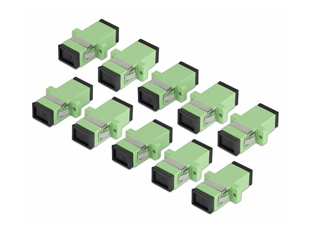 SC/APC enkelläge (hona) till SC/APC enkelläge (hona) - fiberoptisk - simplex - 9 / 125 mikrometer - OS1/OS2 - passiv, fläns - grön (paket om 10)