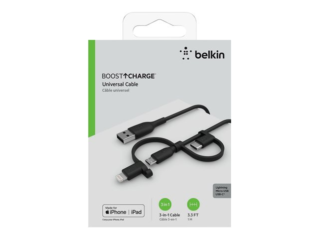 Produktbeskrivning Belkin BoostCharge Universal - USB-kabel - Lightning / USB - 1 m Kabel USB-kabel - Lightning / USB Kabellängd 1 m Kontakter USB - hane Kontakter (andra änden) Lightning - hane