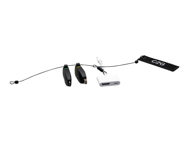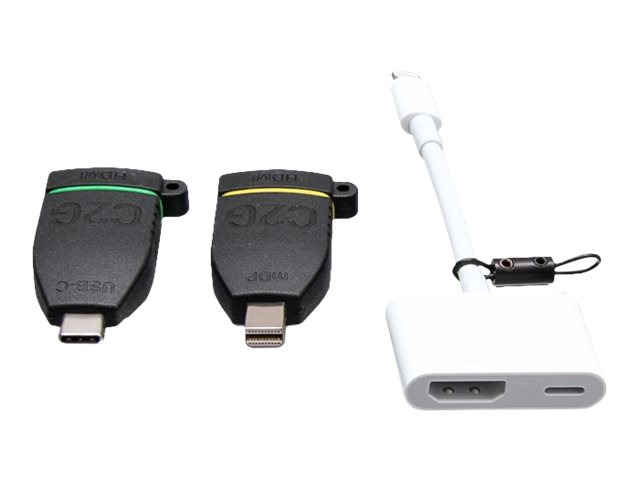 Produktbeskrivning C2G Universal 4K HDMI Adapter Ring with Color Coded Mini DisplayPort, USB-C, and Lightning - videoadaptersats - Mini DisplayPort / HDMI / USB / Lightning Kabel Videoadaptersats - Mini DisplayPort / HDMI / USB / Lightning Inkluderad kvantitet 3 Färg Svart Egenskaper Stöd för 4K Tillverkarens garanti Begränsad livstidsgaranti -