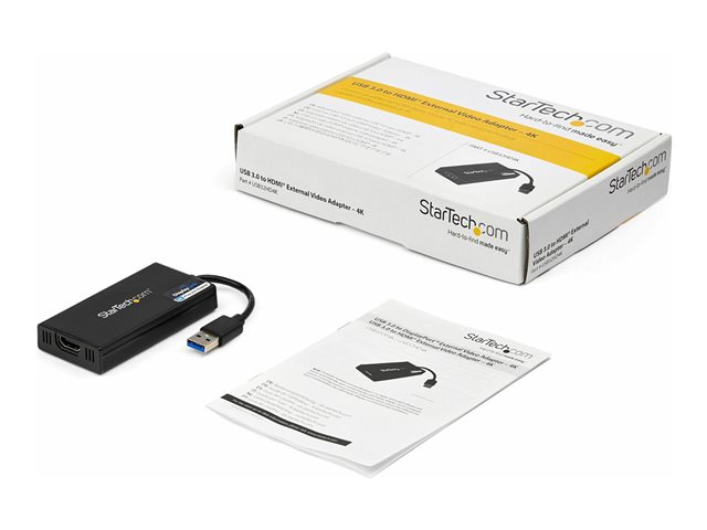 Produktbeskrivning StarTech.com USB 3.0 till HDMI-adapter - 4K 30Hz Ultra HD - DisplayLink-certifierad - USB Type-A till HDMI-skärmadapteromvandlare för bildskärm - Externt video- och grafikkort - Mac och Windows - adapterkabel - HDMI / USB - TAA-kompatibel - 20 cm Kabel Adapterkabel - HDMI / USB TAA-kompatibel Ja Max effektupplösning 3840 x 2160 - 30 Hz Kabellängd 20 cm Färg Svart Kontaktdon USB typ A - hane (ingång) Kontakt (andra änden) HDMI - hona (utgång) Standarder som följs USB 2.0/ USB 3.0 Egenskaper USB-ström + -ljud Tillverkarens garanti 2 års garanti Designat för P/N: HDDVIMM3, HDMIDVIMM10, HDMIDVIMM6, HDMM10, HDMM12, HDMM15, HDMM1MP, HDMM25, HDMM2M, HDMM2MP, HDMM3, HDMM3MP, HDMM50, HDMM50A, HDMM6, HDPMM50 -