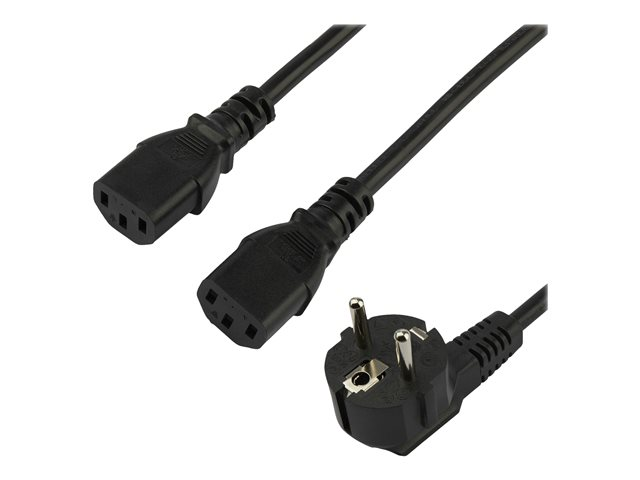 Produktbeskrivning StarTech.com 2m (6ft) Computer Power Cord, 18AWG, EU Schuko to 2x C13 Power Cord, 10A 250V, Black Replacement AC Cord, TV/Monitor Power Cable, Schuko CEE 7/7 to IEC 60320 2x C13 Power Cord - PC Power Supply Cable - strömkabel - power CEE 7/7 till power IEC 60320 C13 - 2 m Typ Strömkabel Kabellängd 2 m Kontaktdon Power CEE 7/7 - hane Kontakt (andra änden) 2 x power IEC 60320 C13 Märkspänning AC 250 V Märkström 10 A Färg Svart Tillverkarens garanti Begränsad livstidsgaranti -